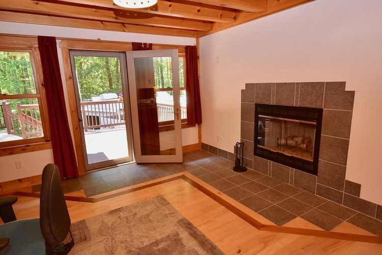 Beautifully designed, passive solar, post & beam contemporary located on acreage. Amethyst Brook abuts the lot and trails are right outside your door. Spacious foyer to greet guests with two closets. Dramatic open living/dining room with stone fireplace, cathedral ceilings, and a wall of doors and architectural glass. Kitchen is located in the front of the house and offers a large amount of cabinetry, pantry closet and tile counter tops. First floor master bedroom with fireplace, two closets and accesses the main bath that hosts the laundry closet and a large shower. The large deck is perfect for summer entertaining and overlooks the peaceful, private backyard. Upstairs there are two large bedrooms that could easily be shared and a second full bath. Walk out lower level has a finished multi-purpose space. Home was built with 2′ ‘x 6’ construction with high end Marvin windows oriented towards the South for solar gain. Solar Hot Water a plus. Many custom details.