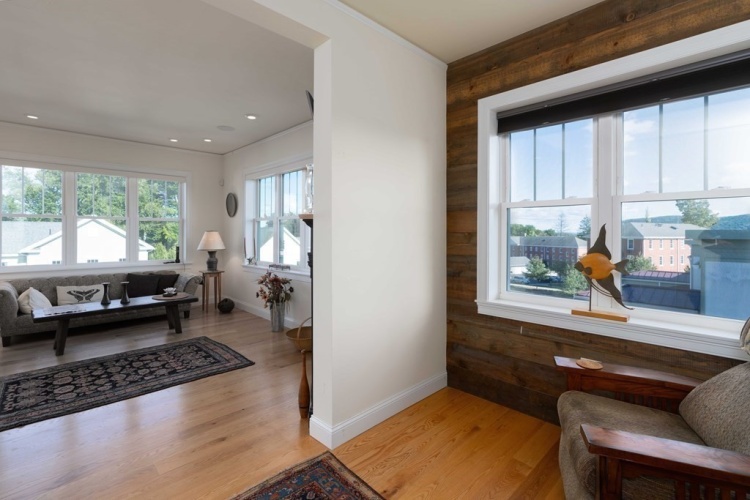 Great design, exemplary construction, energy efficiency, and spectacular views all come together in this south-facing penthouse condo. This LEED Gold-certified home built by Wright Builders brings with it thoughtful upgrades by the owners and is a bright and airy space that is quietly elegant yet filled with state-of-the-art fixtures and elements. The kitchen is highlighted by the gorgeous Ashfield Stone counters and island, Kitchen Aid appliances, Black Walnut cabinetry, and with low voltage lighting fixtures for dramatic or cozy effects. A 4 port streaming Sonos music system invisibly plays music throughout the condo, and also controls the 55” Sony Glass 3D TV as well. The private balcony with auto awning is a special place to relax seasonally. An owned solar array provides electric offsets and SREC income. The many mindful and quality features in this home allow one to age in place and enjoy the sensibility and thoughtfulness that was put into this unique condo.